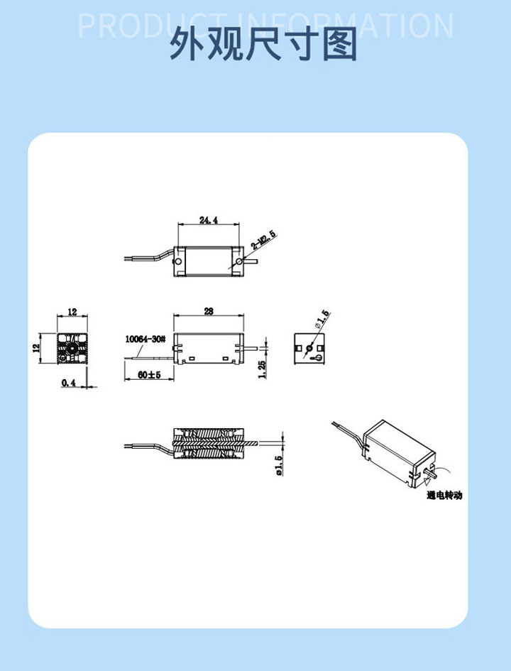 工作方式:通電轉動90度